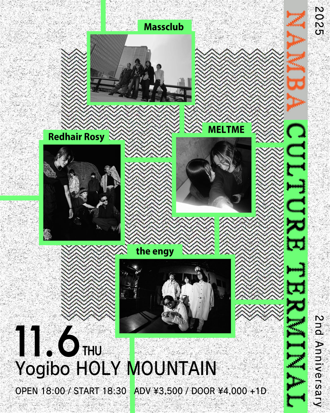 NAMBA CULTURE TERMINAL DATE: 2025/11/6(Thu) OPEN / START 18:00 / 18:30 TICKET ADV : ¥3,500 +1D 一般発売 : 10/18(土)AM10:00〜 https://eplus.jp/nct2025/ -LIVE- Massclub MELTME the engy Redhair Rosy
